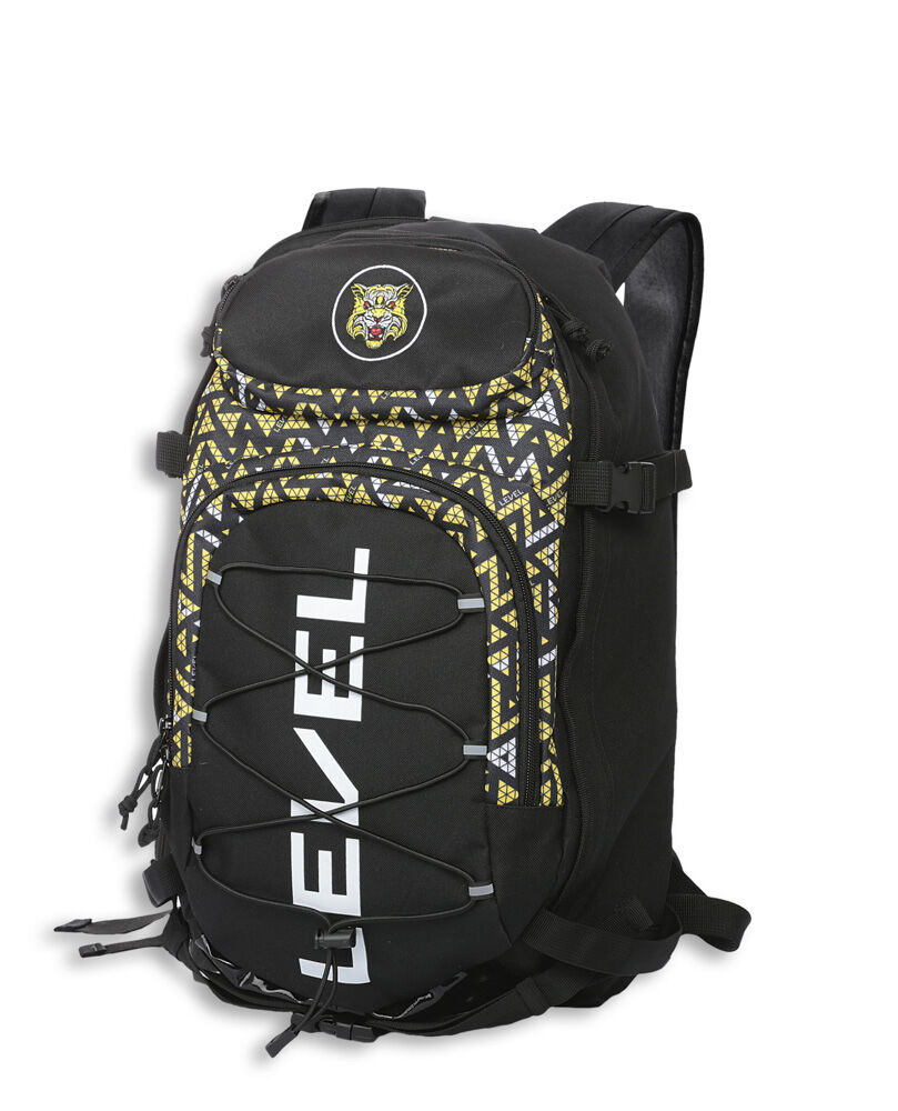 Batoh Level v polstrovanými ramenními popruhy a zády. Vrchní stash kapsa, přední zip kapsa s organizérem, externí popruhy, nastavitelný bedení pás.