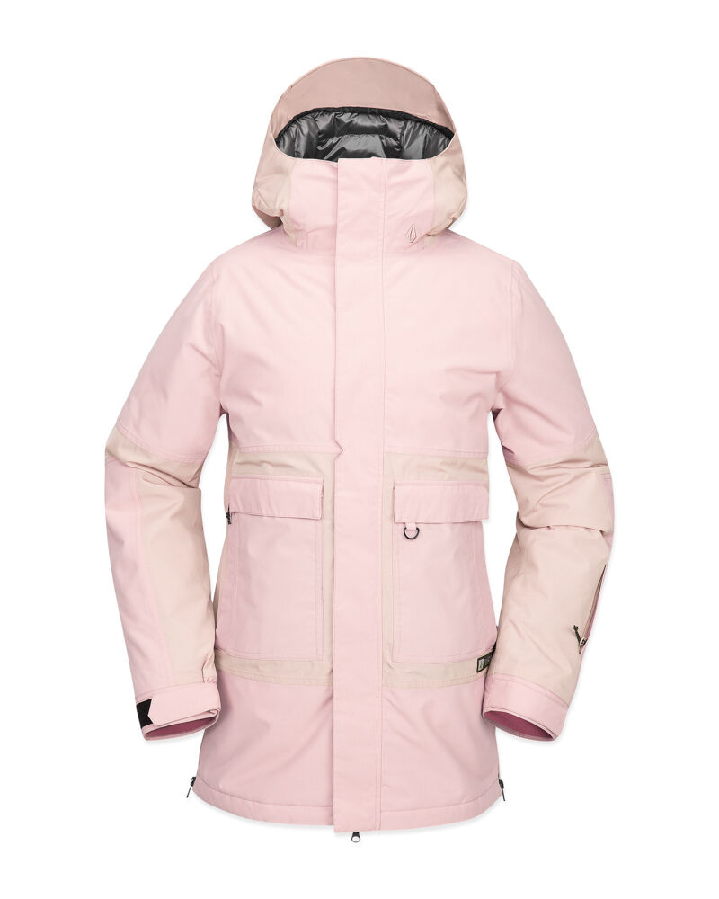 Dámská snowboardová bunda Volcom v širším střihu se zateplením technologií TDS (bederní panely plněné kachním peřím). Materiálem je 2-vrstvá Volcom V-science tkanina s voděodolnou a větruvzdornou membránou (15,000mm / 10,000gm2). Prodloužený střih, vnitřní zateplení 100g výplní (syntetické peří), hřejivá podšívka V-Science TDS® INFRARED 2L Lining System. Plně podlepené švy, boční kapsy, zip kapsa na rukávu, technologie Zip-Tech pro připnutí ke kalhotám Volcom, nastavitelné rukávy, kapuca a vnitřní bederní pás. Složení materiálu: 54% polyester, 46% recykovaný polyester.