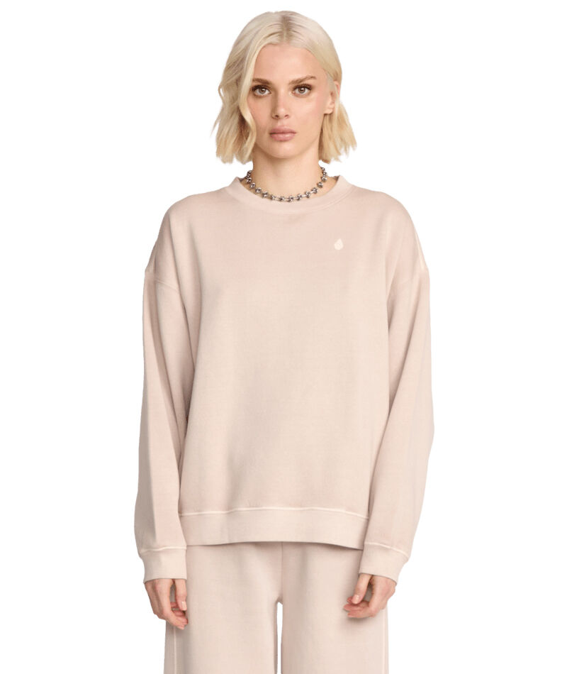 Dámská mikina Volcom přes hlavu je navržena v volném střihu (loose fit), který zajišťuje pohodlí a uvolněný vzhled. Má kulatý límec a je zakončena žebrovanými lemy na límci, rukávech i spodním okraji. Vnitřní část límce je ozdobena černobílou páskou, která dodává mikině originální detail. Na hrudi se nachází výšivka Volcom Stone, zatímco na zádech je umístěna výšivka Volcom. Mikina má efekt praní Stone Wash, který jí dodává lehce vintage vzhled. Délka ve velikosti S (od ramene po spodní lem) je 24 palců (61 cm) a její hmotnost činí 325 gramů, což z ní dělá pohodlný a stylový kousek pro každodenní nošení. Složení materiálu: 70% BAVLNA / 30% POLYESTER.