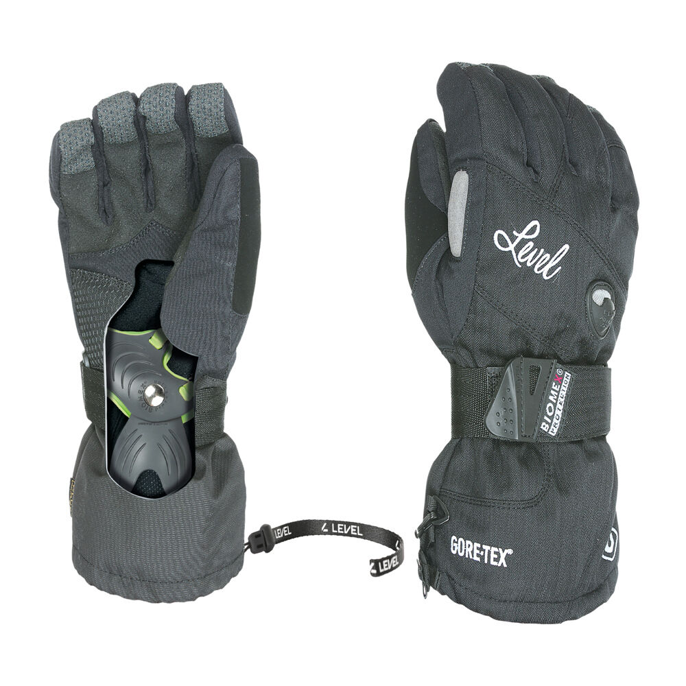 Snowboardové dámské rukavice Level s integrovaným chráničem zápěstí Biomex v pohodlném širším střihu. Odnímatelný chránič zápěstí Biomex, svršek rukavice je vyroben z voděodolného elastického polyesteru, který je na dlani a prstech doplněn o kevlarová vlákna proti prodření. Odnímatelná Knitted Brush podšívka, větrací systém Level, delší zápěstní úplet. Díky kombinaci BOA fleece vnitřní podšívky a technologii Gore Tex + Gore-Tex Warm membrány plní hřejivostní normy Thermoplus 3000 (certifikace do -17°C). Široký a pevný zápěstní popruh.