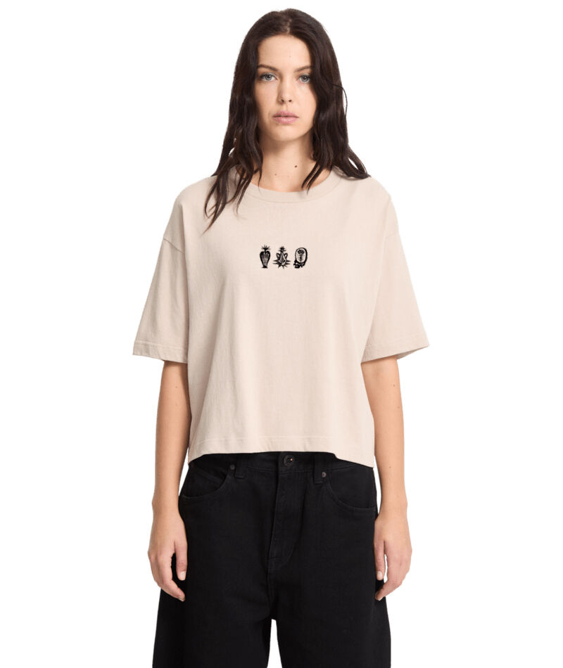 Dámské triko Volcom v klasickém rovném třihu. Potisk Volcom na hrudi. Složení materiálu: 50% bavlna, 50% polyester.