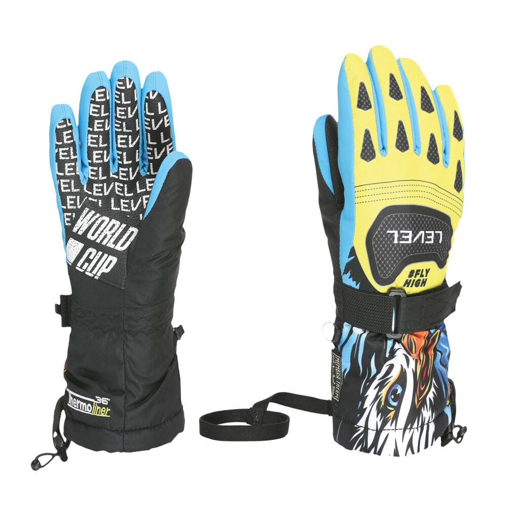 Voděodolné celozateplené rukavice pro mladé lyžaře z odolného polyesteru s vysokým stupněm zateplení splňují teplotní standarty Thermoplus Warm 3000: certifikace do -15°C. Zateplení Hydropill výplní. Technologie Membra Therm Plus - voděodolná membrána odděluje svršek od izolační vrstvy. Prodloužený zápěstní úplet se stahováním zápěstí, Potisk svršku i dlaně dětskými motivy.