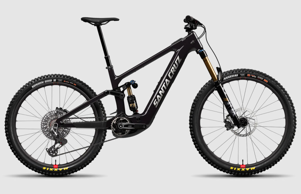 Sjezdové elektrokolo Santa Cruz se silným motorem Bosch Performance Line CX, karbonvým rámem a 170mm zdvihy díky odpružení Fox 38 Float Factory, Grip X2, 170mm/FOX Float X2 Factory, 205x65.