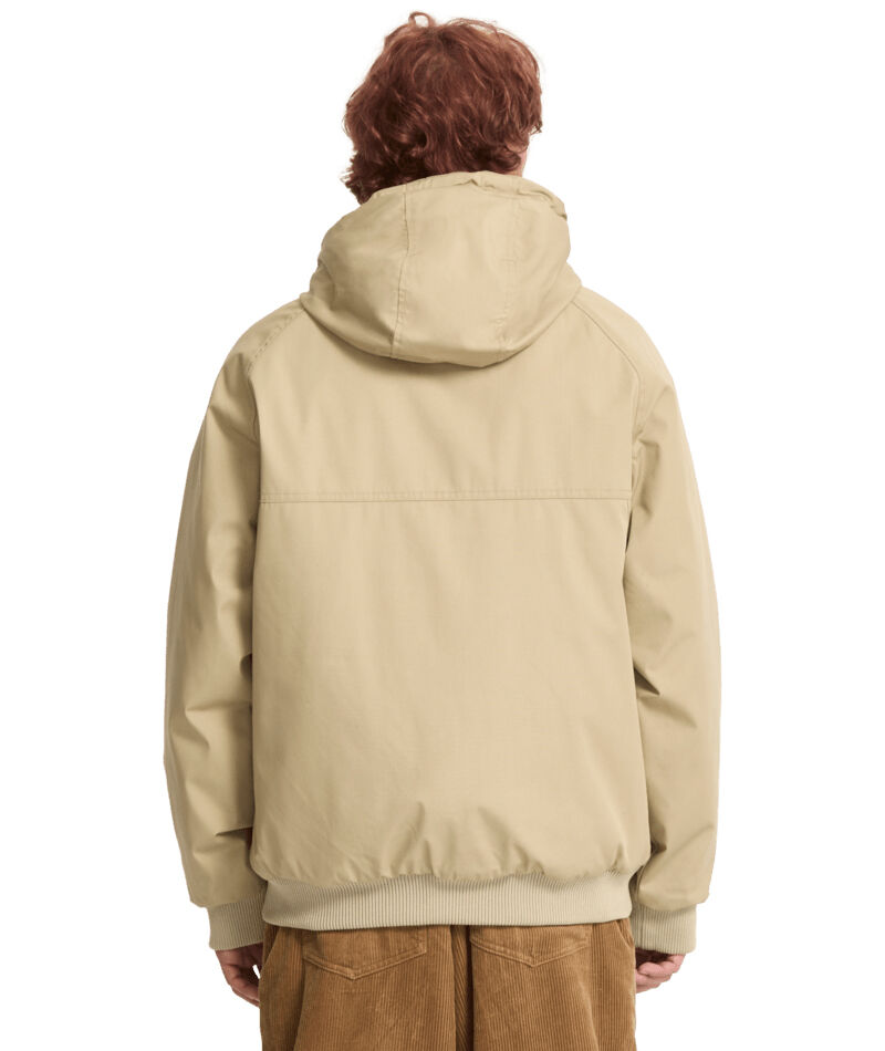 Podšívaná bunda Volcom v kratším střihu do pasu. Rukávy i spodek zakončeny elastickým úpletem. Materiál je chráněn proti poškození teflonovou vrstvou, dispnuje voděodolnou membránou (5000 mm WR), podšívka z polyesteru. Složení materiálu: 65% polyester, 35% bavlna. Přední zapínání na zip, podšívané boční kapsy.