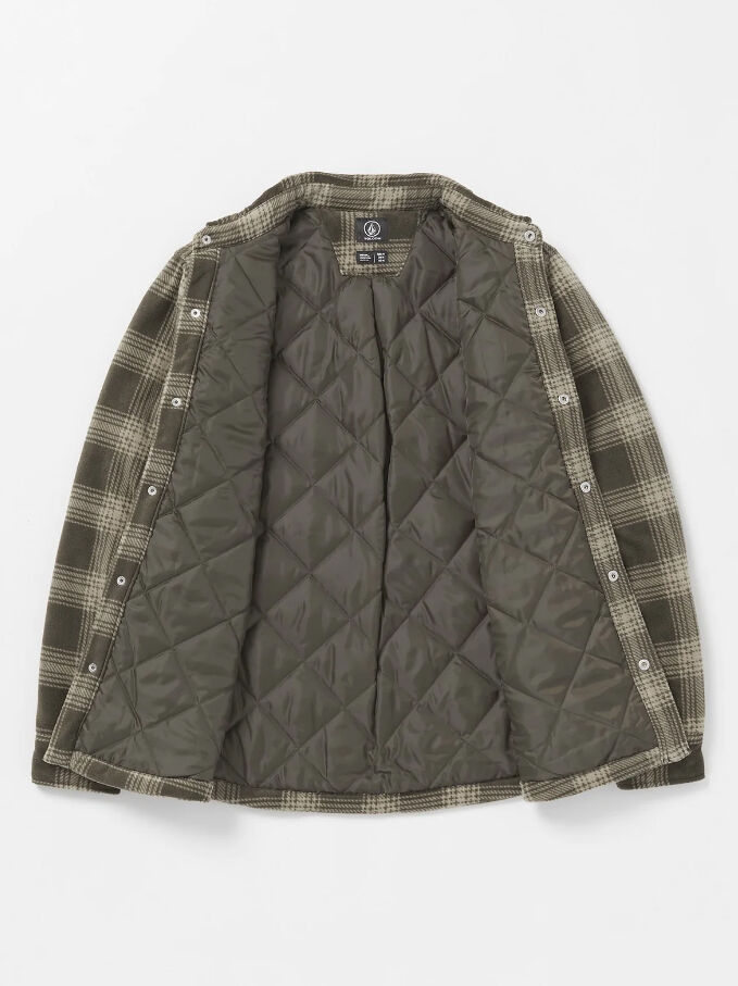 Pánská zateplená košile Volcom v širším střihu s předním zapínáním na patentky. Dvě náprsní kapsy, větruvzdorná podšívka. Složení materiálu: 100% polyester.