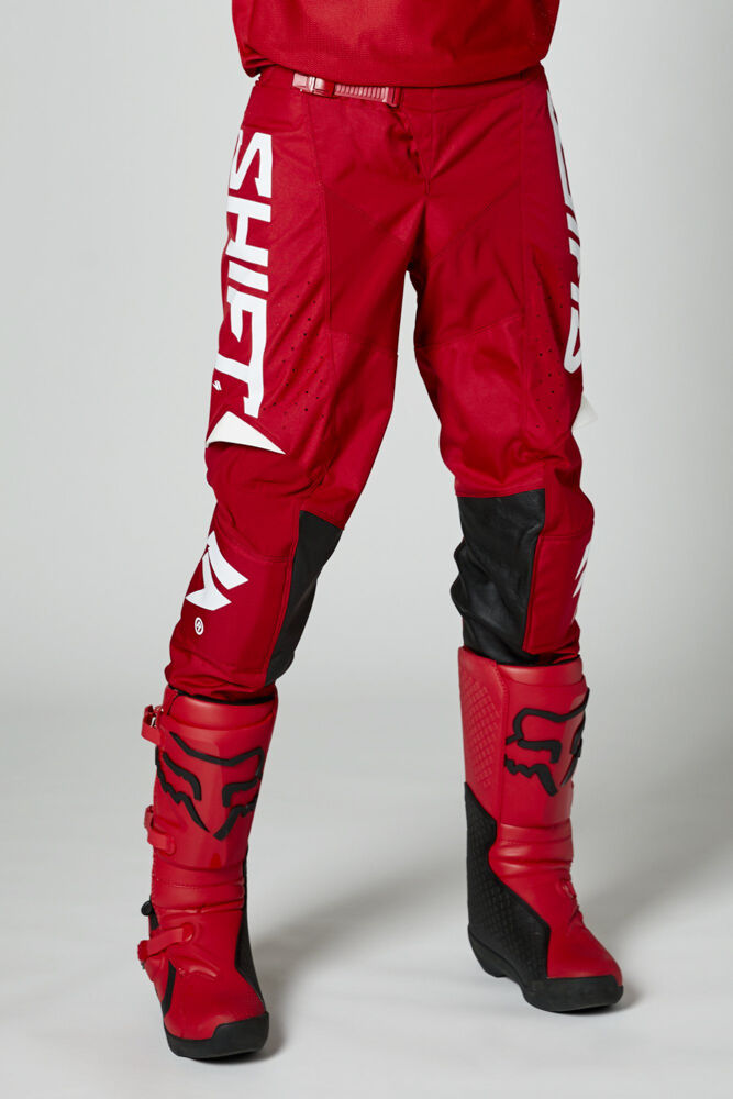 Pánské motokrosové kalhoty Shift. Složení materiálu: 100% polyester v odolném provedení 600D. Materiál vyníká funkcí odvodu potu a vlhkosti. Ergonomicky tvarované elastické zóny na kolenou, v rozkroku a zadní oblasti pasu poskytují pohodlí a zvyšují pohyblivost jezdce. Vnitřní kožené kolenní panely chrání proti teplu od motoru. Nízkoprofilové úplety spodků nohavic, nastavitelný obvod pasu plastovou přezkou, odvětraná stehna a kolena, blednutí odolná grafika Shift.