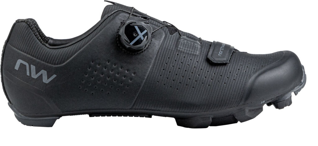 Pánské XC tretry Northwave s podrážkou XC 10 z odlehčených kompozitových vláken s gumovými protiskluzovými prvky. Unibody konstrukce s velkými větracími zónami a velmi odolnými tenkými materiály v ergonomickém střihu omezuje něžádoucí tlaky. Asymetrické utahování omezuje tlaky na svršku boty a díky systému Northwave SLW3 dial lze botu rychle a jemně dotáhnout i v rukavicích. Spodní Power strap na suchý zip. Gumová ochrana špičky boty a kotníku, vnitřní vložka Race pro zvýšení pohodlí. Utahování pomocí nejpevnějších lanek z Dyneema vláken. Velikost uvedena v EU číslování, hmotnost: 360g.