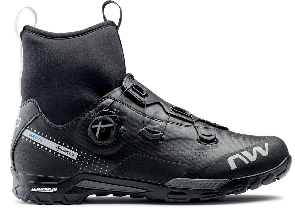 Pánské XC/Trail tretry Northwave s odolnou podrážkou Michelin Explorer (až o 28% odolnější). Svrchní část je vyrobena technologií overlap pro omezení nežádoucích tlaků a také pro ideální přenos sil. Utahování rychlosystémem SLW2 s možností jemného nastavení. O ochranu proti nepříznivým vnějším vlivům se stará membrána Gore-Tex Koala. Neoprenový kotníkový úplet Easyfit Climaflex neomezuje pohyb a chrání před nepříznivými vlivy. Vnitřní 4-vrstvá vložka Arctic 4L (kombinace EVA materiáu a hliníku) se stará o izolaci tělesného tepla, reflexní detaily po obvodu pro lepší viditelnost. Hmotnost 514g. Velikost uvedena v EU číslování.
