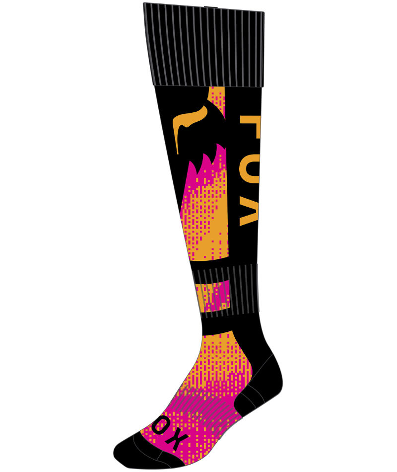 Pánské motokrosové ponožky Fox ve vyšším střihu. Zesílená pata a špička, kompresní podpora klenby, vyplétaná loga Fox. Složení materiálu: 52% akryl příze, 42% nylon, 5% polyester, 1% elastan.