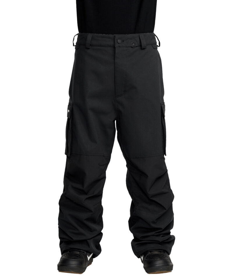 Pánské zimní kalhoty Volcom v širším baggy střihu. Složení materiálu: 100% polyester s membránou Volcom V-science (2 vrstvy) s vodním sloupcem 15K/10k. Nastavitelný obvod pasu, technologie Zip Tech pro připnutí k bundám Volcom, větrací zip otvory s vnitřní síťkou, prodyšná V-cience podšívka. Zapínání na zip + knoflík, boční zateplené zip kapsy, zadní kapsa. Spodní cargo kapsy na boku, Nastavitelný obvod pasu, spodek nohavic chráněn proti prodření. Podlepené švy na kritických místech.