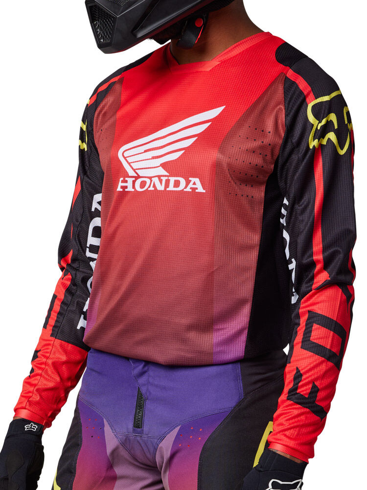 Pánský motokrosový dres Fox v pohodlném širším střihu s prodlouženými zády. Jemná a odlehčená tkanina plní funkci odvodu potu od těla, perforované větrací zóny se starají o neustálý přísun vzduchu k tělu, prodyšný krční límeček i rukávové úplety. Potištěno odolným sublimačním potiskem Fox, který nebledne na slunci. Složení materiálu: 100% polyester.