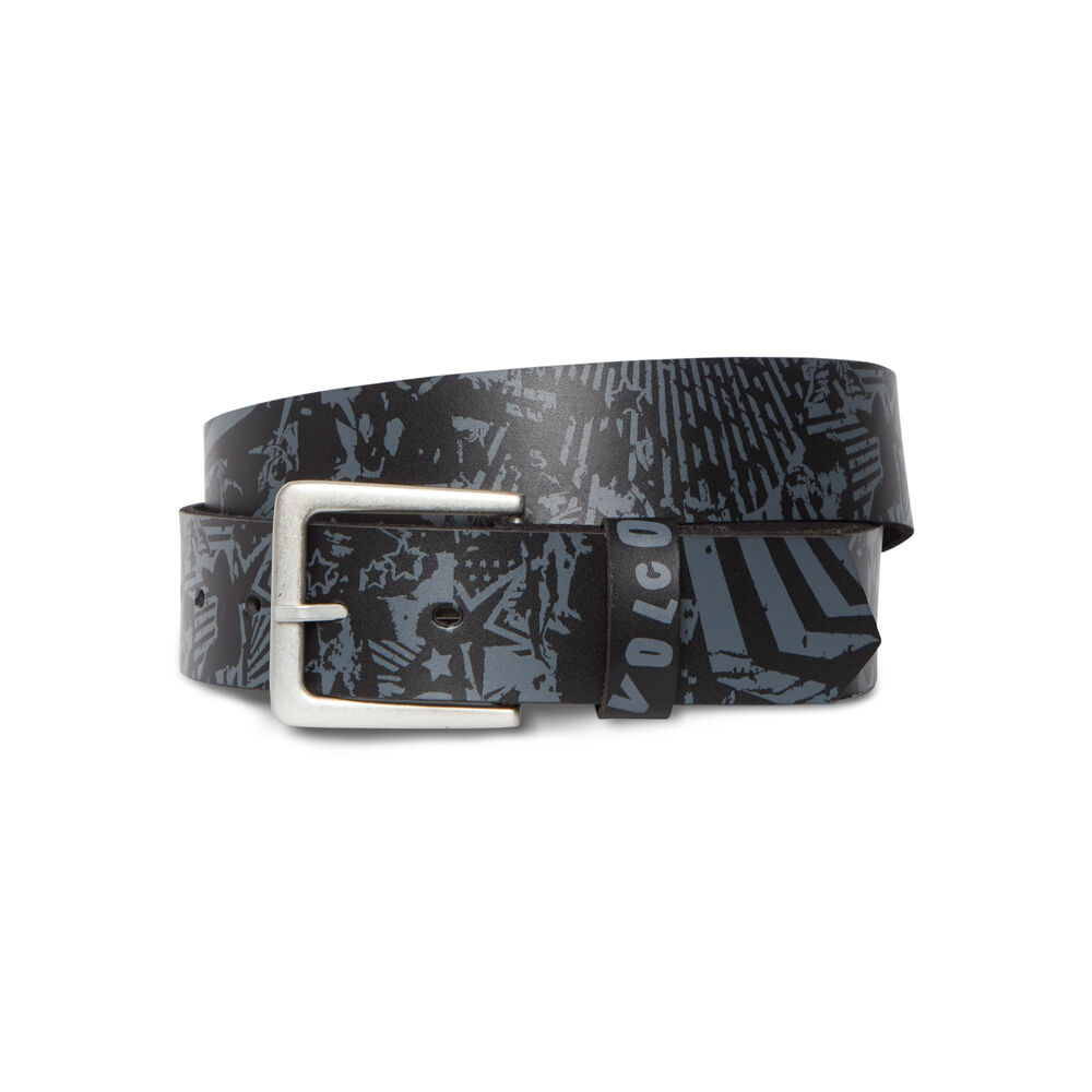 Pánský pásek Volcom z pravé kůže s motivy Volcom. Šířka 3,75cm, kovová přezka.