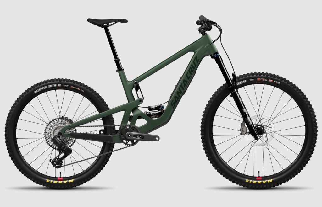 Trailové kolo Santa Cruz ma celokarbonovém rámu Carbon CC MX 150mm Travel, 4-Bar s odpružením Fox a pohonem SRAM X0 Eagle AXS.